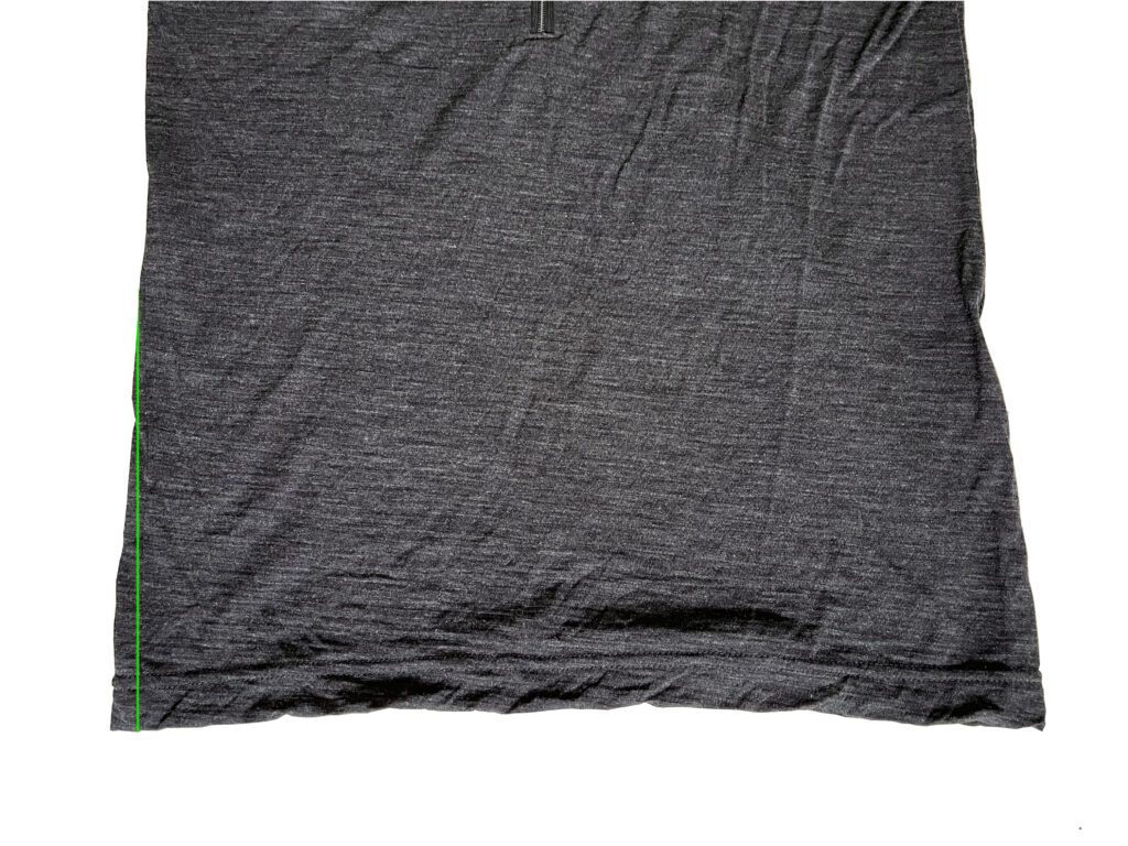 グリーンのラインのところに脇線がきています。1cmほどで着心地はまったく問題ありません。