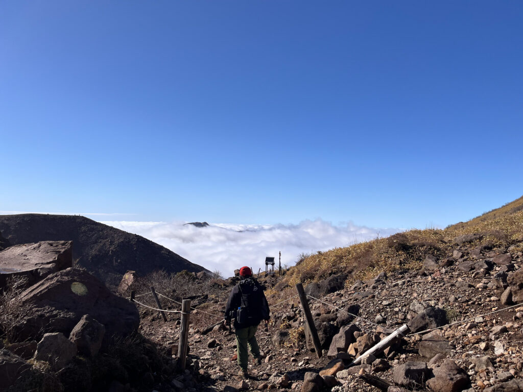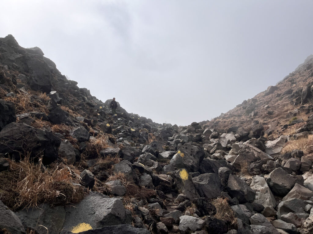 九州は森林限界が低いそうで、すぐに樹林帯を抜けてゴツゴツの岩場へ。