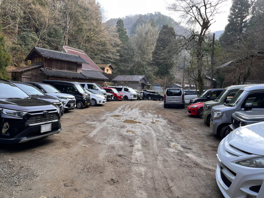 3月31日、日曜日朝7:00。今畑登山口周辺駐車場に到着。奥にも駐車場がもうひとつあり、そちらはまだ空きがありそうでしたが、手前は最後の1台でギリギリ停めれました。