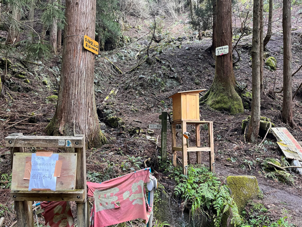 登山口周辺は廃村跡なので、廃屋がたくさんあったりなんとも言えない雰囲気ですが、ここからスタートです!
