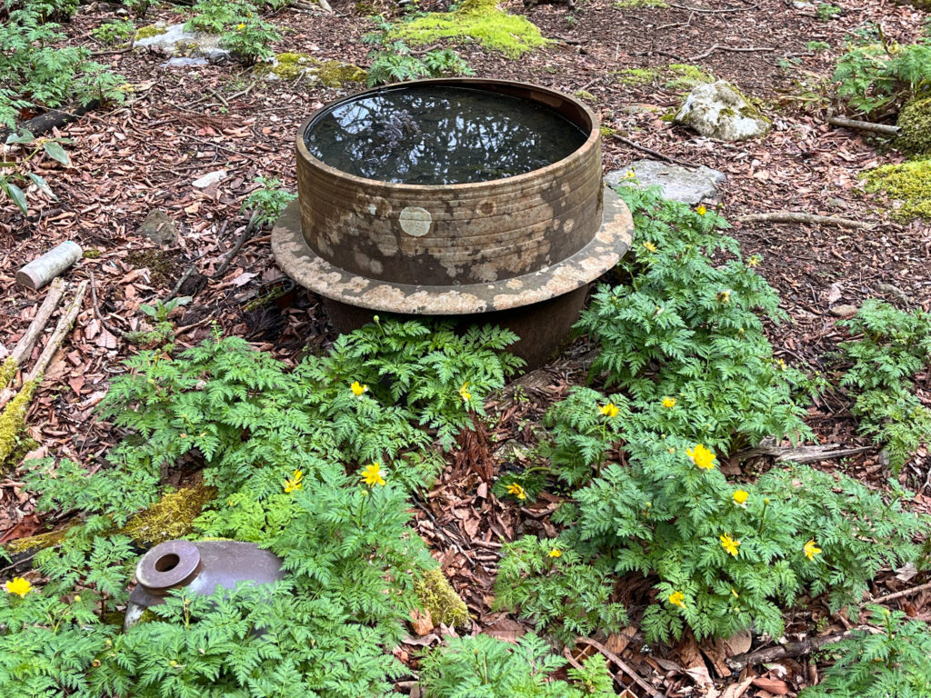 登り始めすぐの廃村跡にも福寿草がたくさん咲いていました。麓だからか、もう枯れかけていました。