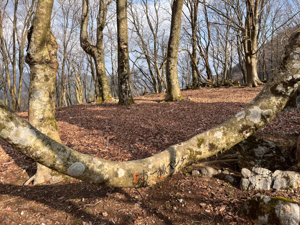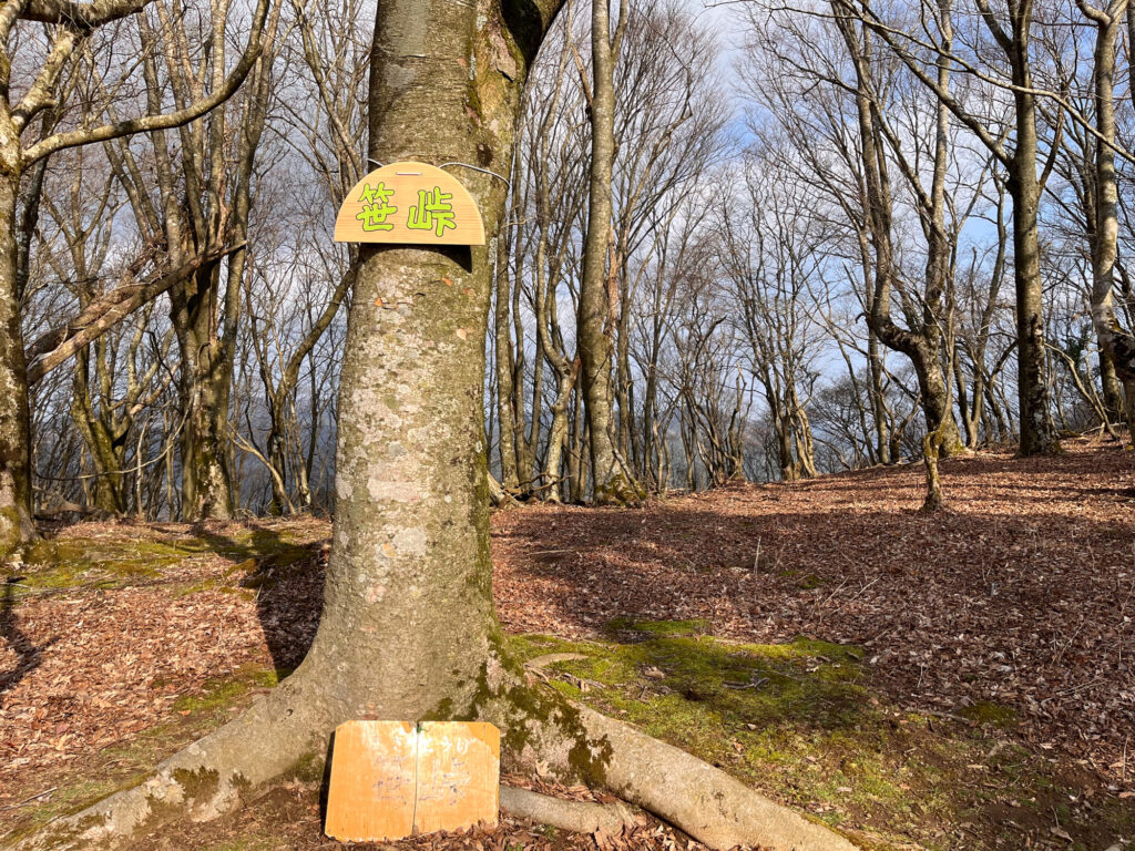 1時間ほど登りやすい樹林帯をいくと、笹峠に到着。平らなご褒美ゾーンです。