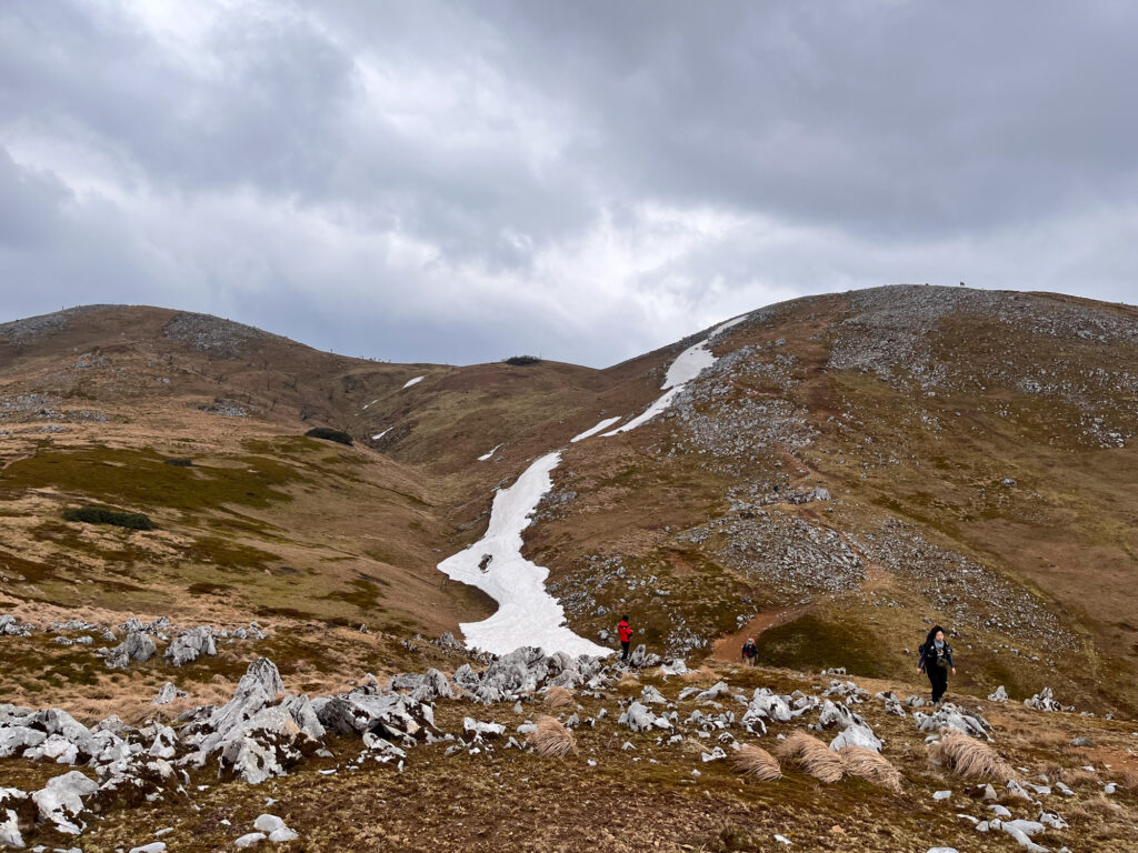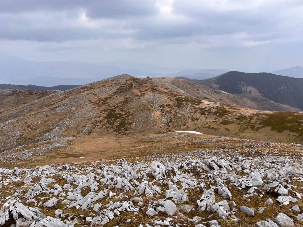 霊仙山は初心者でも楽しめる登りやすい山ですが、しっかりとした登りごたえと美しいカルスト地形の絶景が魅力です。春には福寿草が咲き誇り、花好きにもおすすめのスポット。