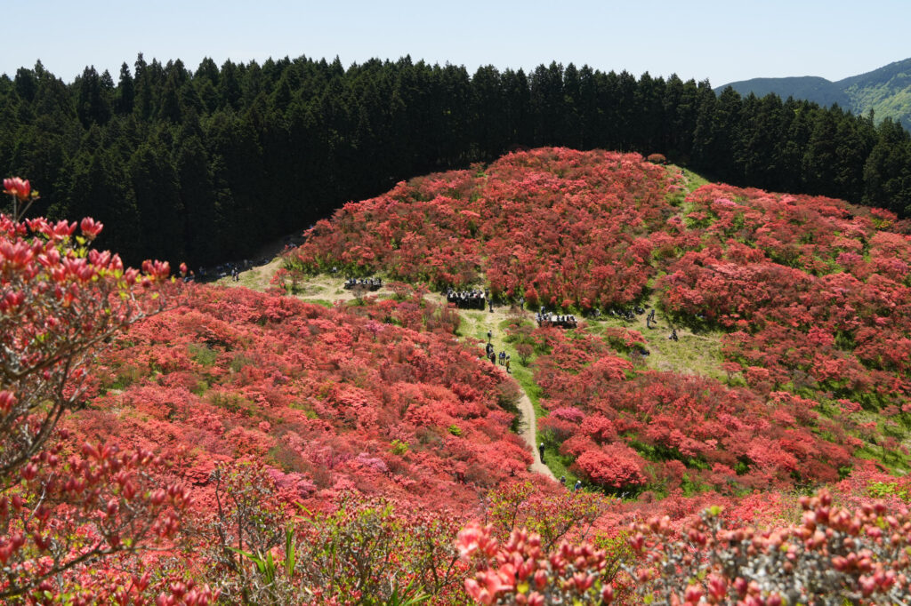 初心者でも気軽に挑戦できる王道コースを歩き、山頂では鮮やかなツツジの絨毯を満喫。ロープウェイの利用も可能なので、体力に自信がない方も絶景を楽しめます。