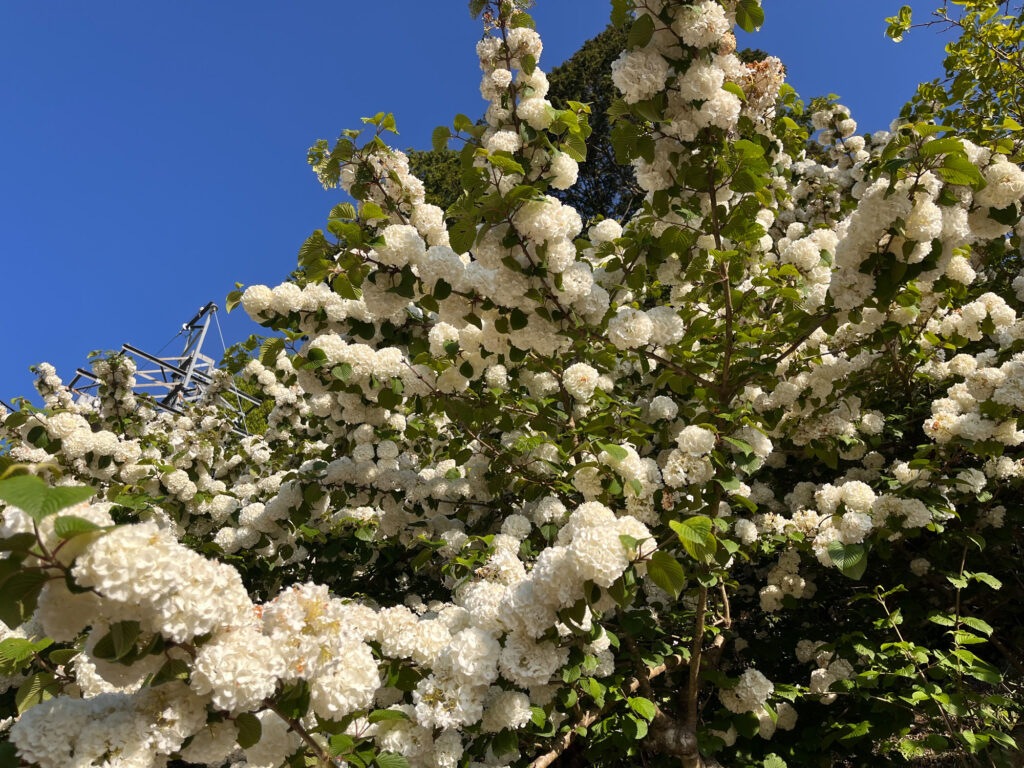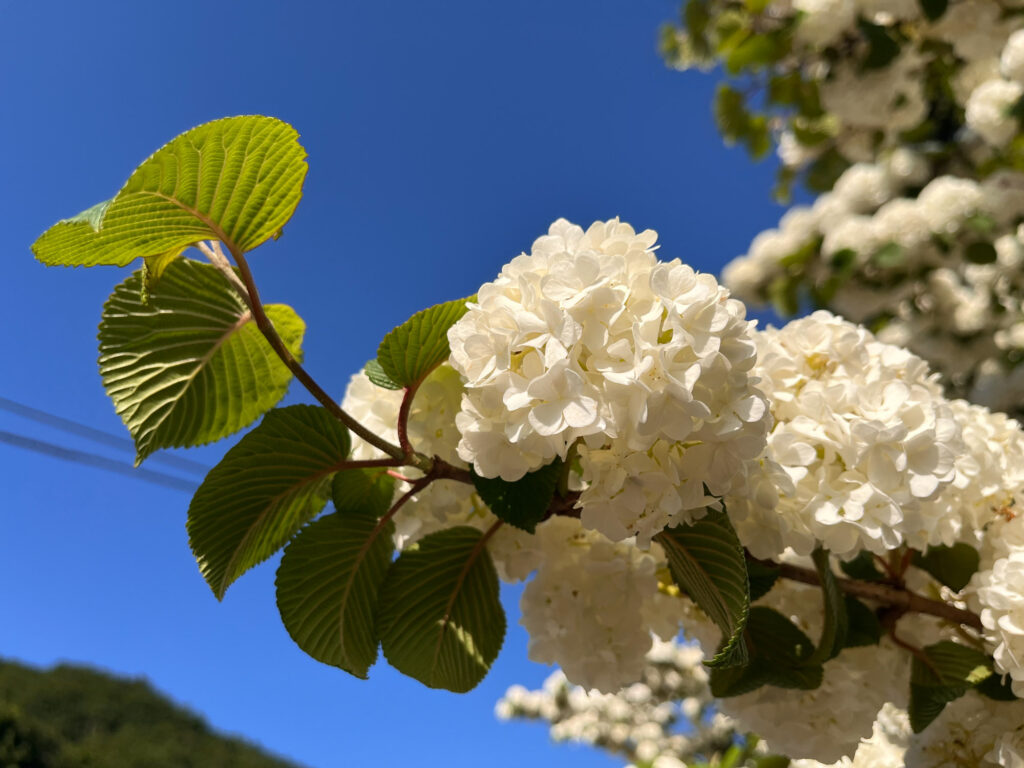 登山口手前に綺麗な白いお花が咲いてました。満開!