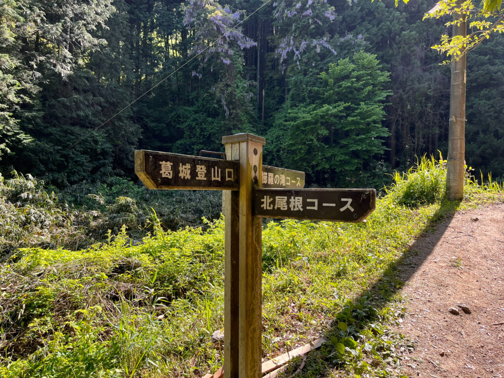 登山口を入るとすぐに、くじらの滝コースと北尾根コースの分岐があります。