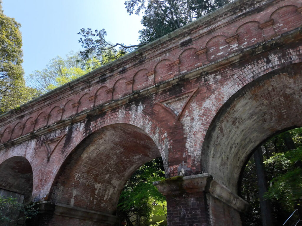 南禅寺の正面から入りお堂も過ぎてまっすぐ行くと、有名な赤レンガの水路閣が現れます。