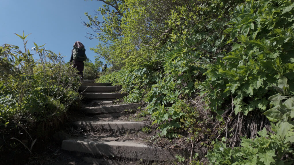 登りやすいですが、休憩できる広いスペースのあるポイントがなく、登っている人も多いので自分でペース配分して、周りにも配慮しながら適宜休憩を取る必要があります。