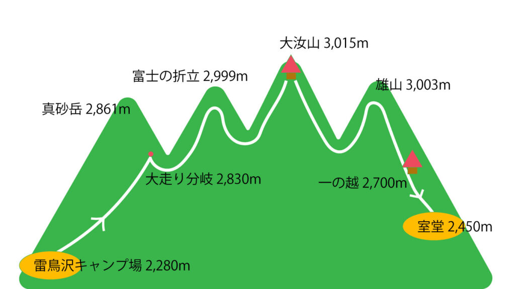 雷鳥沢キャンプ場大走り分岐富士の折立大汝山雄山一の越室堂