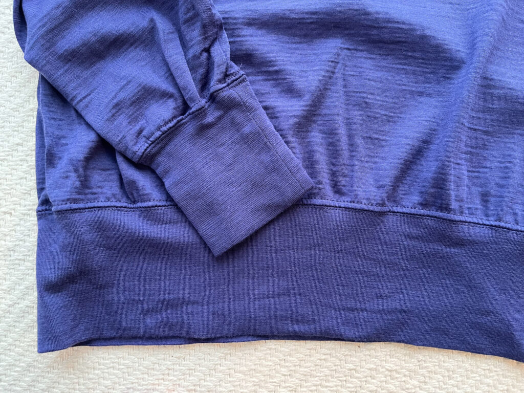 メリノプルオーバーは、メリノライトのさらっとした感触に厚みが加わってもちもち感がプラスされ、袖口と裾にリブがあります。