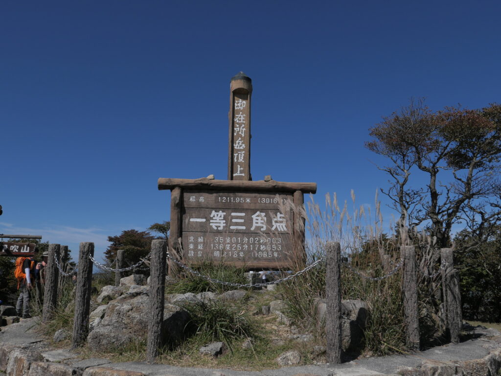 週末の山頂は大賑わいでした。登山者よりも、ロープーウェイのお客さんが多かったです。紅葉シーズンは混雑が予想されますね。