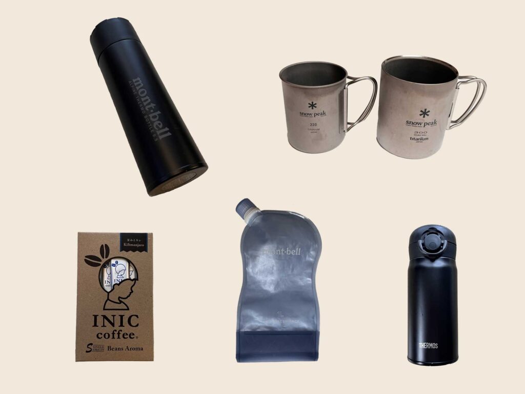 マグカップはプラの方が軽量ですが、コーヒーがプラの味がする気がして…チタンの方が美味しいので重さを犠牲にしています。