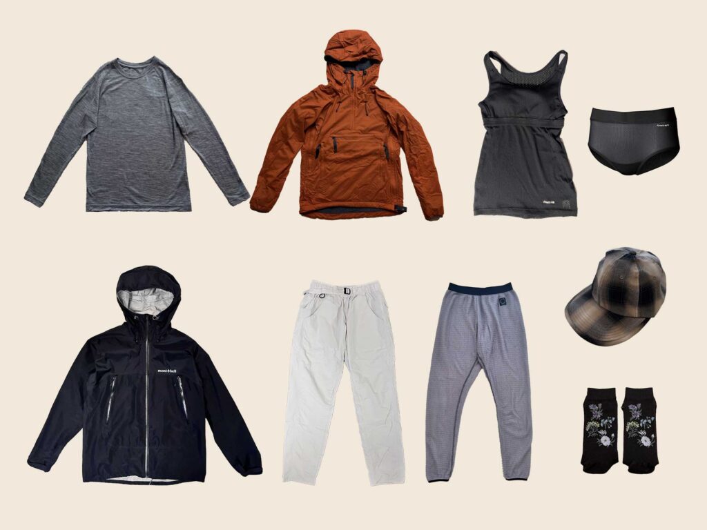 衣類が一番重量があるので、洗濯やメリノウール素材を選ぶことで着替えが減らせます。