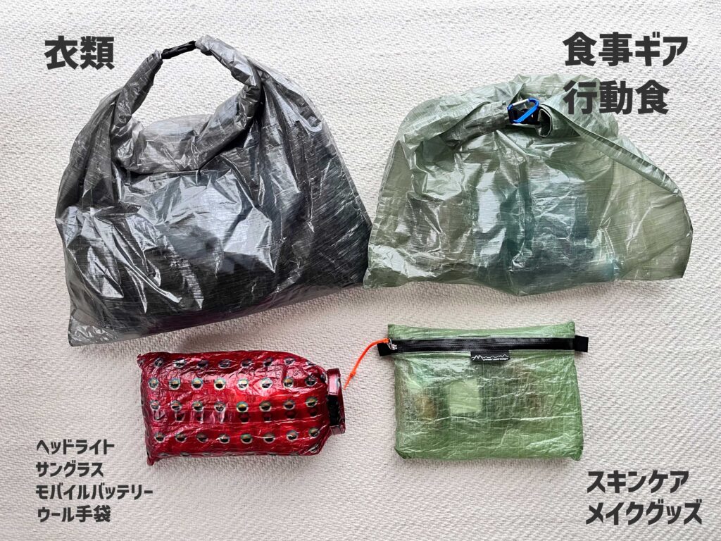 それぞれスタッフサックに仕分けます。