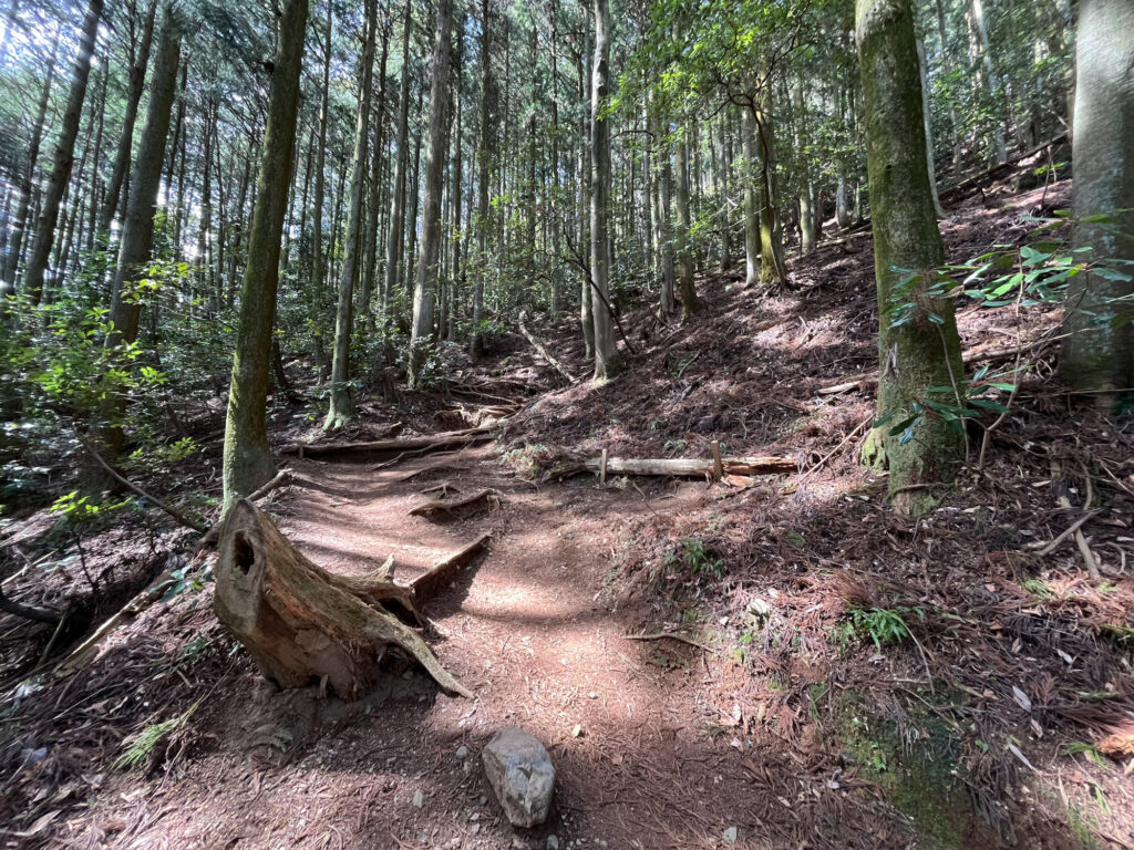 急登はなく、道も綺麗に整備されていて非常に歩きやすい樹林帯の中を歩いていきます。