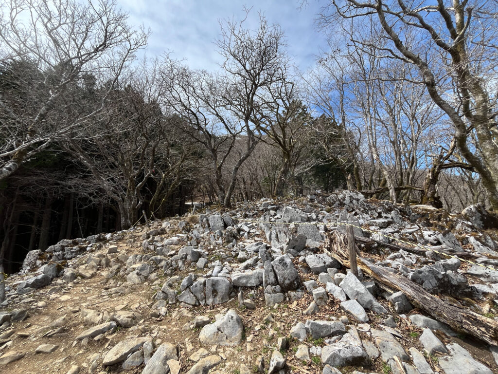 カルスト地形の石灰石が現れ始めました。