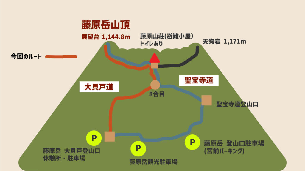 徒歩で移動も可能な距離なので、2つの登山道を周回するのもおすすめです。