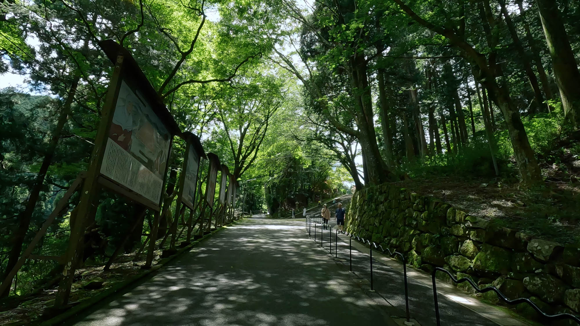 秋は紅葉が綺麗そうですね。舗装された道が出てきたら、もうすぐ延暦寺に到着です。
