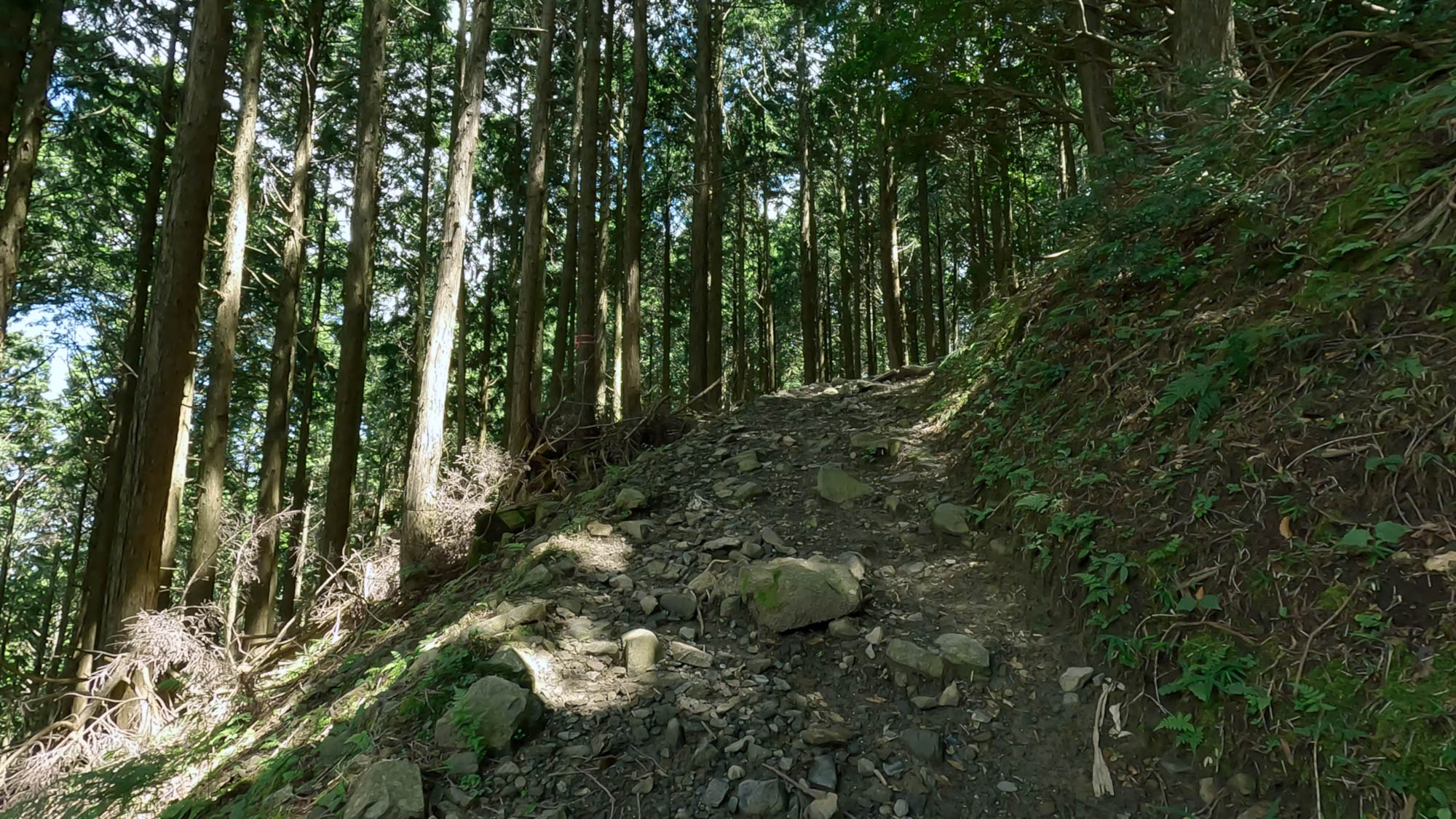 基本的にはずっと樹林帯を歩き、たまに眺望が見れます。ずっと木陰を歩くので真夏でも登りやすいと思います。